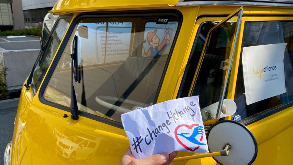 Mit einem gelben VW-Bus war help alliance kürzlich für die Aktion Change4change auf Tour. An verschiedenen Standorten der Lufthansa Group in Frankfurt hatten Mitarbeitende die Möglichkeit, ihr Restgeld an help alliance zu spenden und so benachteiligte Menschen in aller Welt zu unterstützen. Die Schillinge, Rupien oder Peseten die man aus einem Urlaub oder von einer Dienstreise mitgebracht hat, sind nicht nur eine nette Erinnerung, sondern „bares“ Geld. Und help alliance verfügt über die nötige Logistik und Infrastruktur, um aus Restdevisen wieder „richtiges“ Geld zu machen. Das geht nicht nur mit gültigen Währungen, sondern auch mit Währungen, die kein offizielles Zahlungsmittel mehr sind.