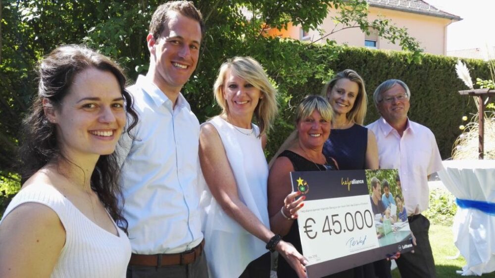 help alliance-Schirmherrin Vivian Spohr hat gestern im Rahmen der Hauptversammlung die Gelegenheit genutzt und das Projekt Stern des Südens in Flörsheim besucht. Dort werden aktuell rund 60 Kinder mit Migrationshintergrund und Flüchtlingskinder spielerisch an die deutsche Sprache herangeführt und nach der Schule betreut. Mit an Bord waren auch help alliance-Projektleiter und A320-Pilot Michael Kopf und Flugbegleiterin Angie Kuhm, die sich seit vielen Jahren ehrenamtlich in Flörsheim engagieren. Spohr kam nicht mit leeren Händen: Sie hatte einen Scheck der help alliance in Höhe von 45.000 Euro dabei, der die Hälfte der Kosten für den dringend benötigten Anbau des Vereinshauses deckt. Somit können noch mehr Kinder betreut werden.